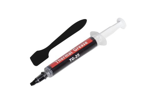 TG-25 è una siringa contenente pasta termica dall'alta conduttività termica, da applicare a CPU e GPU per la miglior dissipazione del calore possibile. Questo è un formato da 2g con spatola.
